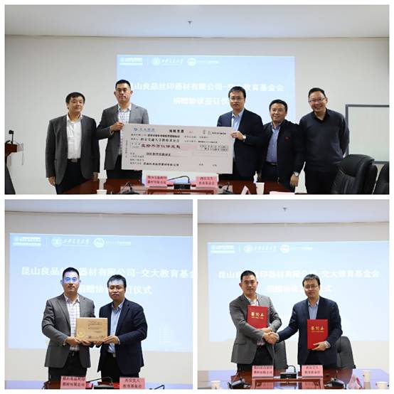 昆山高新区党群工作部(人社局)副部长陆轶峰介绍了昆山市的人才政策,并期待与西安交通大学进行密切互动、加大合作力度。昆山良品丝印器材有限公司博士后工作站总负责人倪震就目前与西安交通大学联合培养博士后的情况进行了汇报,也期待可以与必赢唯一官方网站开展全方位、多层次的合作。交流期间,昆山良品丝印器材有限公司倪震与教育基金会副秘书长邢晓强也代表双方签订了捐赠协议,邢秘书长对倪总等对基金会的捐赠表示感谢。本次交流会也初步确定了昆山高新区-交大必赢唯一官方网站共建博士后培养基地和科教实践基地等事项,将有力推进双方在科技成果转换及人才培养方面的合作共赢。