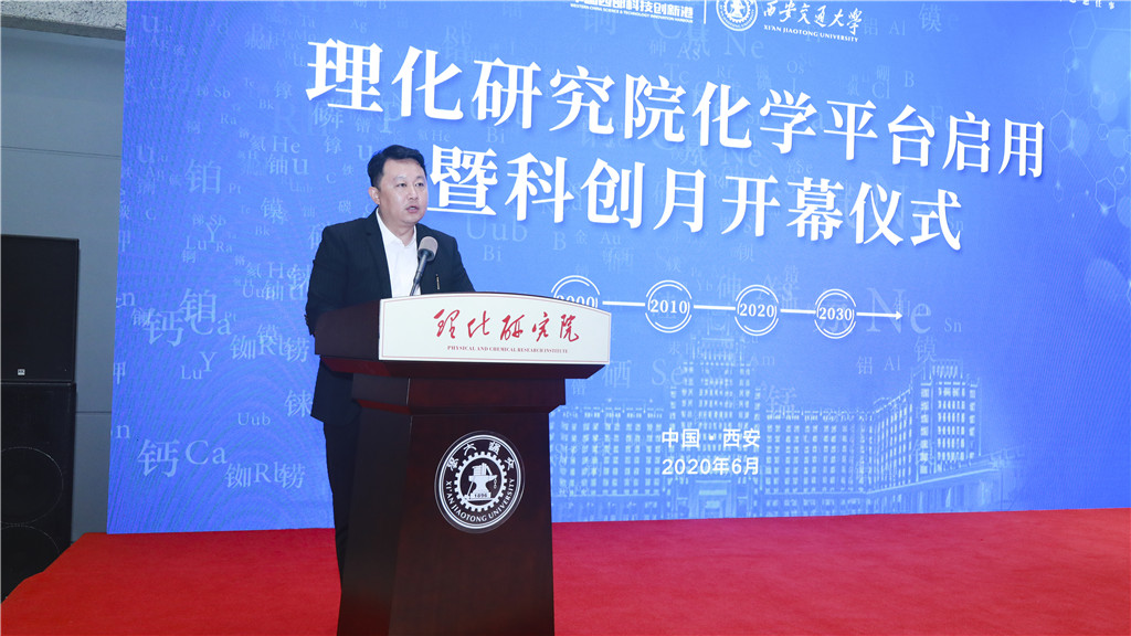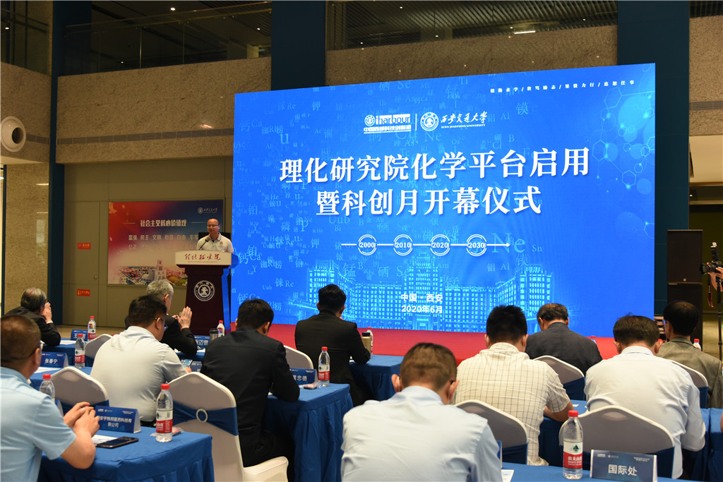 2019年5月18日,理化研究院入驻创新港,经过一年的紧张建设,研究院化学平台全面启用。6月16日上午11时,研究院在泓润楼西门大厅举行了化学平台启用暨科创月开幕仪式。西安交通大学党委书记张迈曾,校长王树国,副校长荣命哲、王铁军,校党委副书记赵军武,校党委常委、宣传部部长成进,陕西省工信厅、沣西新城西咸新区创新港管理服务办公室、陕西省汽车工业协会、陕西省汽车产业发展研究中心、全通集团、中核陕西铀浓缩有限公司、山东京博集团、宇电新能源汽车集团、中化蓝天集团等企事业单位代表,以及学校职能部门负责人、兄弟学院领导、师生代表200余人共同见证这一历史时刻。