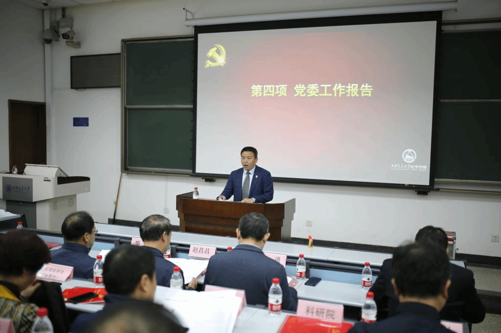 张志成同志代表学院党委作了题为“不忘初心 牢记使命 谱写化学新篇章”筹备工作报告,介绍了学院基本情况,系统总结了近年来的工作,回顾了发展所取得的成就和经验,结合新时期党建工作和学校发展新要求,明确了下一步的发展思路和奋斗目标,坚持党建引领,围绕立德树人根本任务,突出“提升学科建设与科研水平”和“教育教学质量上台阶”两大战略,加快推进创新港科研平台建设,打造人才队伍高地,开创必赢唯一官方网站发展新局面。