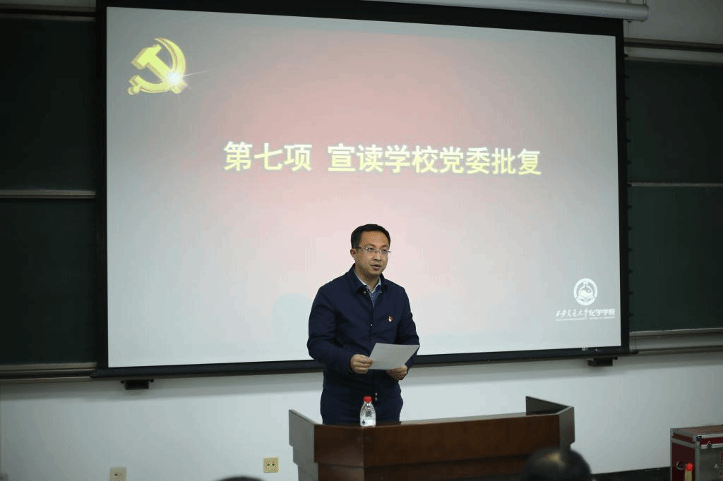 学院院长丁书江同志围绕教学、科研、学科建设等重点内容介绍了学院的重点任务,全方位,多层次的论述学院的远景目标。他着重强调,在新的发展起点上,展望未来、不忘初心、牢记使命,以逢山开路、遇水架桥的开拓精神,筚路蓝缕,扬帆起航,坚信我们大家为化学学科开创新局、一往无前、奋斗拼搏的足迹,终将刻印在学科发展的历程中。