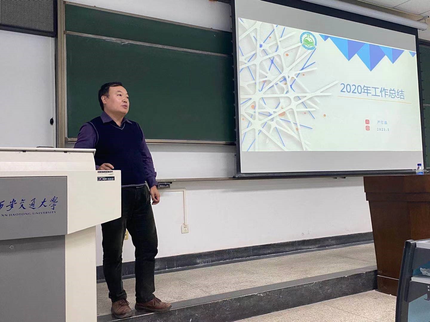 丁书江院长传达了学校寒假工作会议精神中王树国校长作《进入新发展阶段贯彻新发展理念构建新发展格局》主题报告,结合学院2020年度工作,从下好“先手棋”,打好“主动仗”,抢占制高点解读校长讲话。对照王树国校长报告的内容,详细介绍了学院在科研、教学、人才培养、创新港建设、国际合作等方面取得的成绩以及发展的短板,提出了2021年工作要求,号召大家未来在手中,奋斗正当时。
