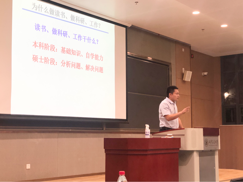 段新华副院长为新生解读了研究生培养的相关政策,分别说明了研究生奖学金、研究生学籍学历管理规定、硕士研究生和博士研究生学位论文质量保障措施。他还详细介绍了研究生助教工作实施细则,并鼓励研究生新生在学习科研之余参与到教学建设中。