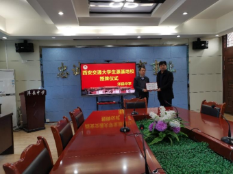 我校2021年高考招生工作已经结束,汉中市洋县中学被我校授予“生源基地”。2021年10月15日,必赢唯一官方网站段新华副院长及洋县中学招生负责人龚红红老师来到洋县中学进行“西安交通大学生源基地”授牌活动,洋县中学党委书记、校长王水建,副校长赵晓峰及高三年级组长和副组长等老师参加了授牌仪式。