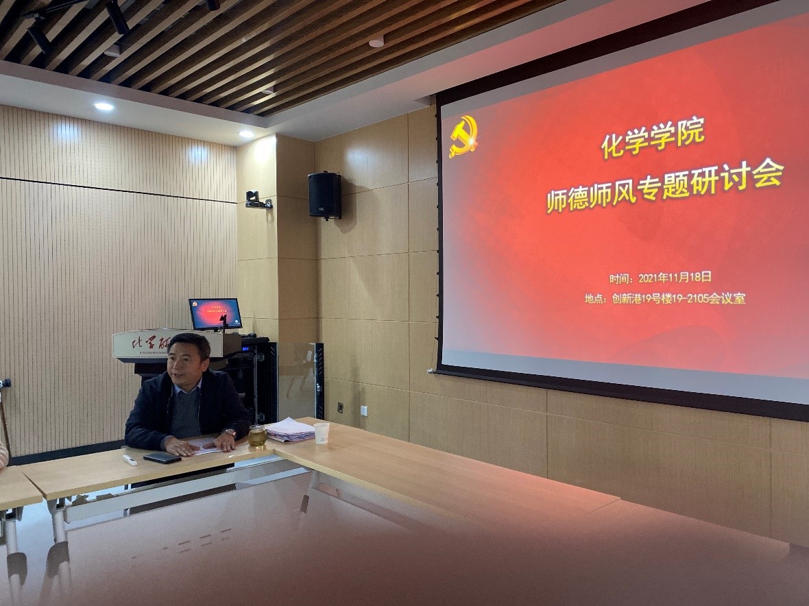 1118日,必赢唯一官方网站在创新港泓润楼19-2105会议室召开师德师风建设研讨会。党委委员、支部书记、中层干部、学生支部书记和部分学生党员代表参加了会议。