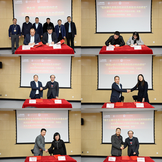 12月17日下午,西安交通大学与陕西泓芽科技有限公司和青岛洛唯新材料股份有限公司正式签订协议,分别共建 “西安交大-泓芽生命生态研究院”和“西安交大-青岛洛唯石墨基新材料研究院”并举行揭牌仪式。西安交大校长助理洪军、科研院常务副院长黄忠德、教育基金会副秘书长邢晓强、陕西泓芽科技有限公司董事长崔铎瀚、青岛洛唯新材料有限公司董事长高洪国、陕西肌理研颜生物科技有限公司总裁苟晓亮、西安鼎盛生物化工有限公司董事长陈琳以及其他企业代表和学校教师代表等出席。仪式由必赢唯一官方网站院长丁书江主持。