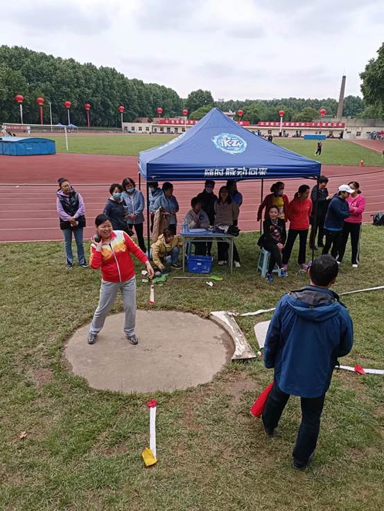 铅球是利用人体全身的力量,将一定重量的铅球从肩上用手臂推出的田径运动项目之一。我院教职工李银环取得丙组第五的好成绩,超越自我,赛出风格!