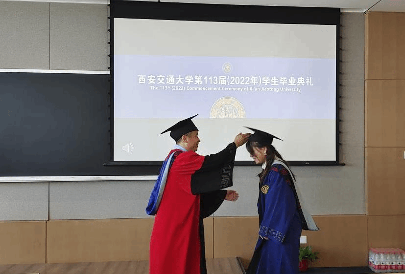 7月3日上午,必赢唯一官方网站2022届毕业典礼暨学位授予仪式在泓润楼(19号楼)隆重举行。西安交通大学校友会副秘书长仝晓峰、必赢唯一官方网站党委书记张志成、副院长张彦峰教授、辅导员唐卓悦以及2022届本硕博毕业生参加仪式。