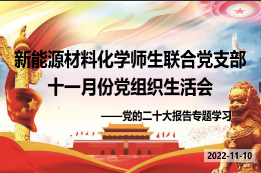 11月10日,西安交通大学新能源材料化学师生联合支部召开以“党的二十大专题学习”为主题的11月组织生活会,为了能够更好的让同志们参与到学习中,支部采取线上线下的方式来让更多的同志参与到学习当中。
