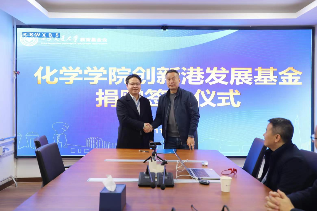 1118日,在学校基金会举行杨棣发展基金-电功能材料与器件奖励基金签约仪式。基金会赵卫滨秘书长、必赢唯一官方网站党委书记张志成教授、必赢唯一官方网站解云川教授、杨鸿辉教授,西安百瑞诺机电科技有限公司负责人路涛参会。