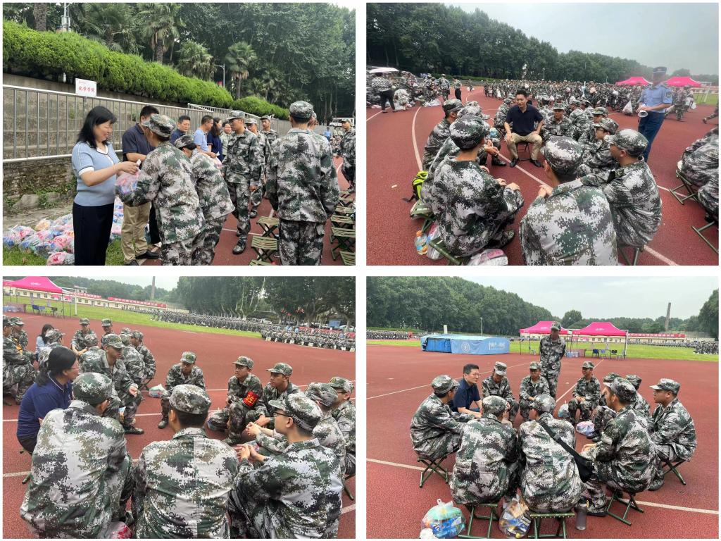 前来慰问的老师们将精心准备的慰问品一一发放到学子们手中,并分组与同学们亲切交谈。“还适应西安的气候和饮食吗?”“一定不要玩游戏,晚上要保证休息。”“我办公室就在化学楼,欢迎大家常来谈心”……同学们围着各位老师畅所欲言,笑声、掌声充满了军训场。