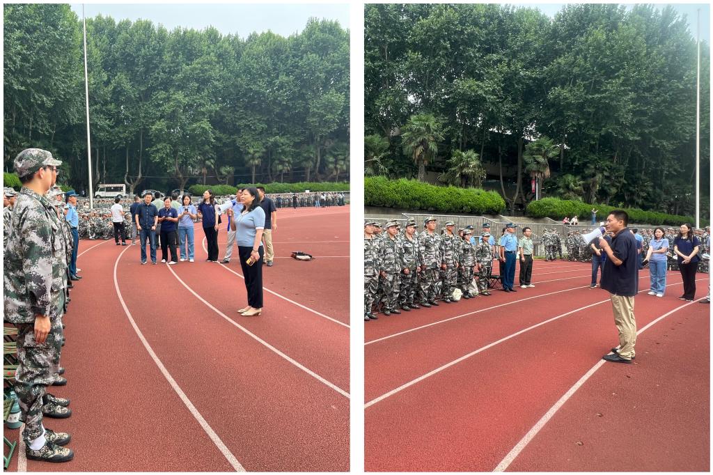 8月25日上午9时,必赢唯一官方网站副院长李银环、副院长张彦峰、各系部主任(副主任)代表、2023级新生班主任等一行来到兴庆校区军训场对2023级参训新以亲切慰问并送上清凉慰问品。
