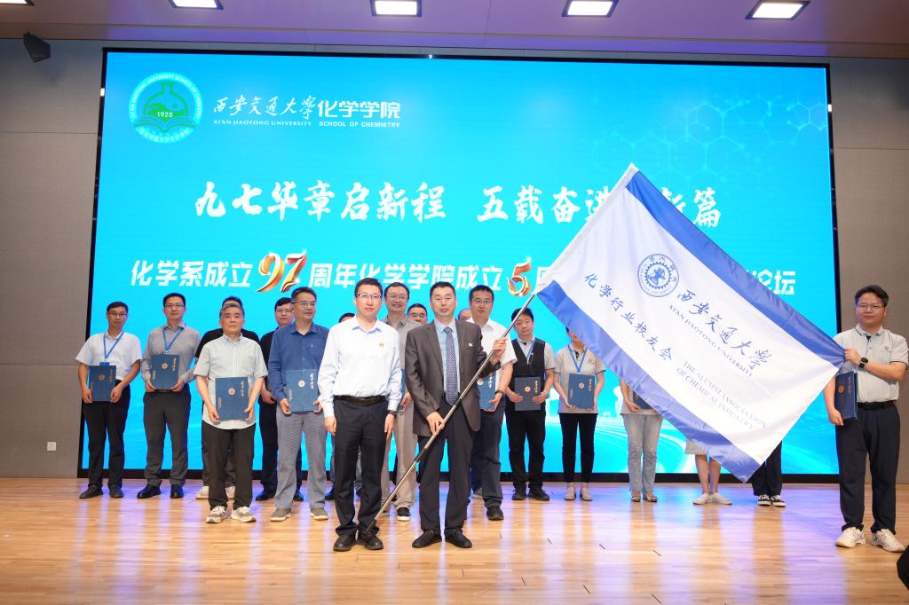 会上,化学行业校友会秘书长杨鸿辉教授向大会报告校友会筹备成立情况。校友关系发展部赵力副主任宣读《关于同意成立西安交通大学化学行业校友会的批复》,许佳辉主任为校友会授会旗。化学行业校友会将肩负起搭建校友联络平台、促进产教融合发展的重任,为全球交大化学人搭建"校友联络-资源整合-产教融合"平台,凝聚力量、共谋发展,提升交大化学人的学术与产业影响力。