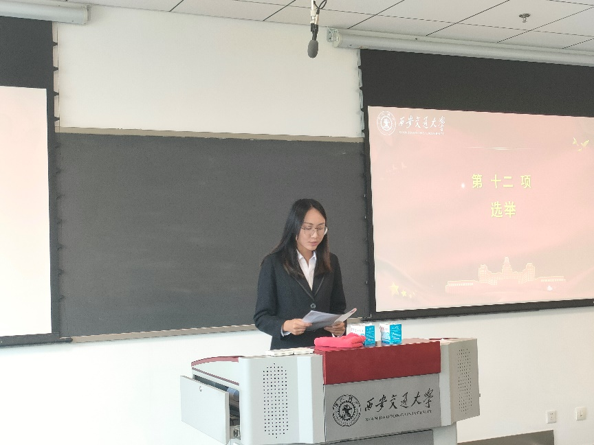 大会通过选举办法推选出陈沂担任监票人,牛佳希担任计票人。由此选举正式开始,选举采用无记名投票方式进行。本次会议选举产生了必赢唯一官方网站第四届研究生会主席团,必赢唯一官方网站第四次研究生常任代表,西安交通大学第十四次研究生代表大会代表。