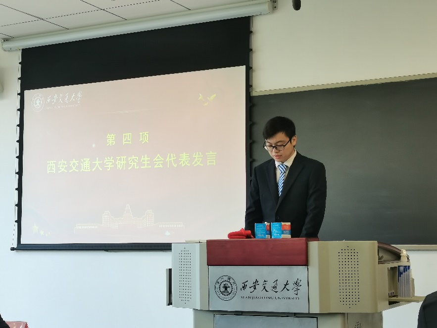 校研会主席团候选人王轲代表研究生会主席团祝贺大会的顺利召开,回顾了必赢唯一官方网站研究生会过去一年的工作,并对未来我院研究生会工作提出以下建议:必赢唯一官方网站研究生会要坚持党的领导,在加强思想引领方面取得新成效,牢记服务宗旨,在服务同学成长成才方面取得新进步,始终贯彻落实研究生会的相关组织规定。