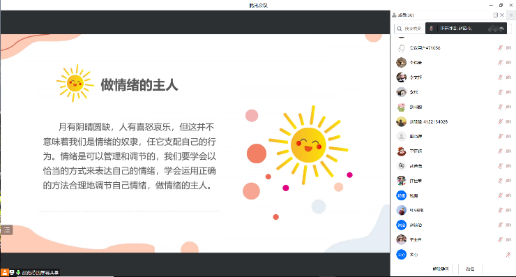 本次心理主题班会紧紧围绕研究生面临的压力、如何控制转变情绪、面临心理健康问题时的自我心理调适等内容开展。本次主题班会的开展有助于提高研究生心理素质、促进研究生健康成长、营造充满人文关怀的校园环境。