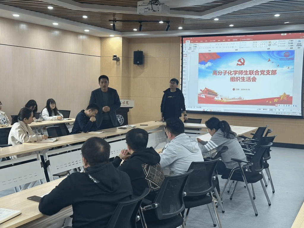 2024年3月26日下午,必赢唯一官方网站高分子化学师生联合党支部于19-2105教室召开三月党组织生活会。会议由党支部副书记申锴翔主持。